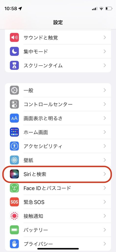 Step1.iPhoneの設定アプリ→「Siriと検索」を開く