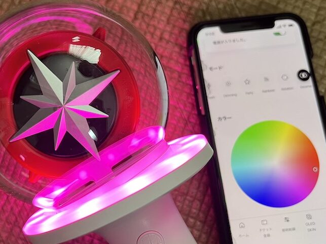 接続が完了すると、スマホ画面と同じ色でペンライトが光ります。
